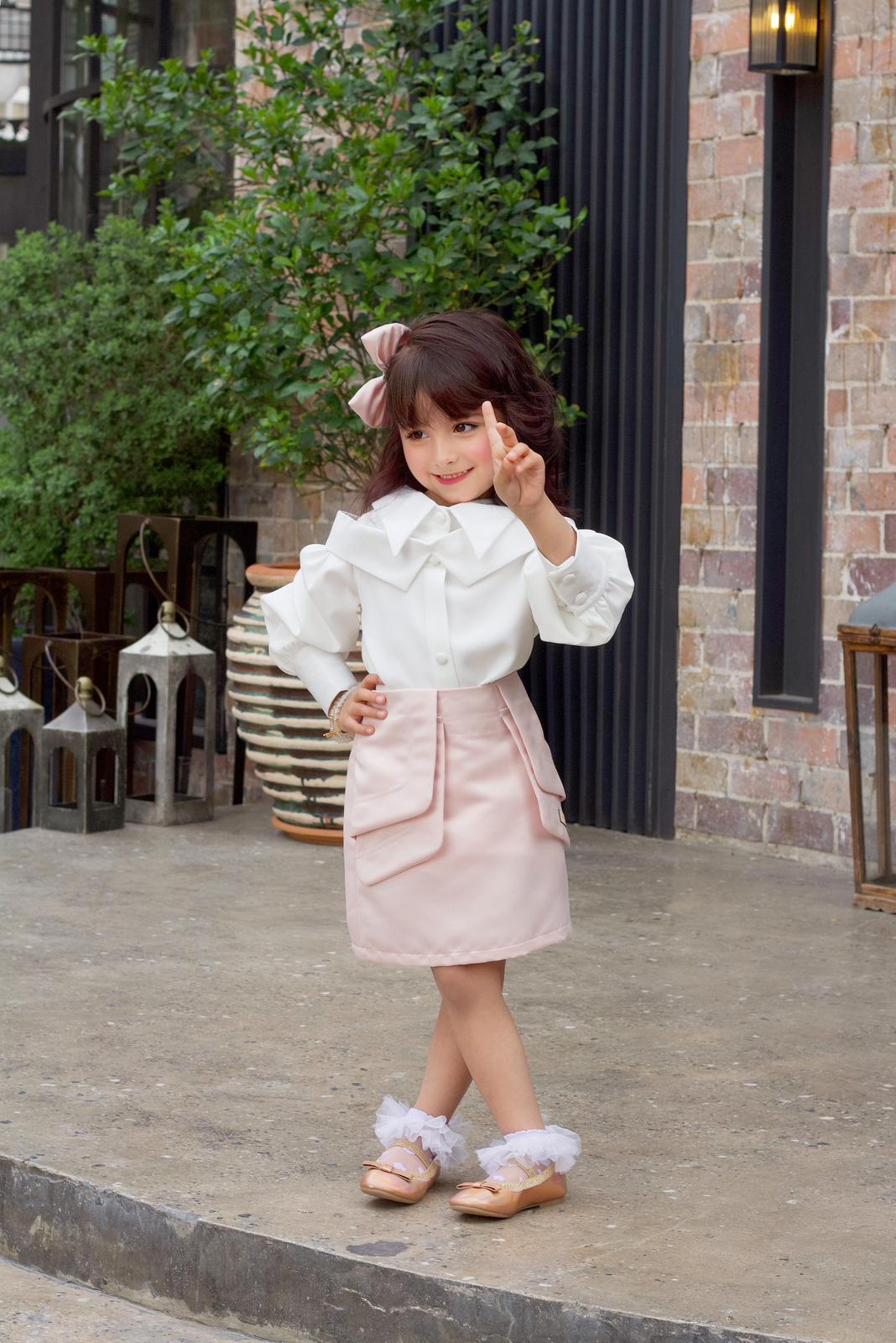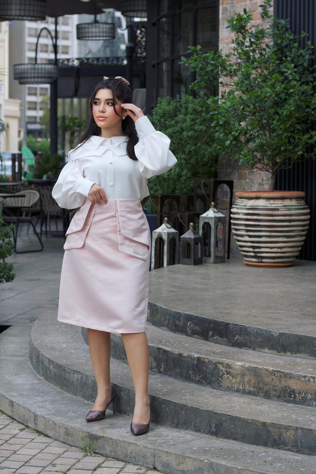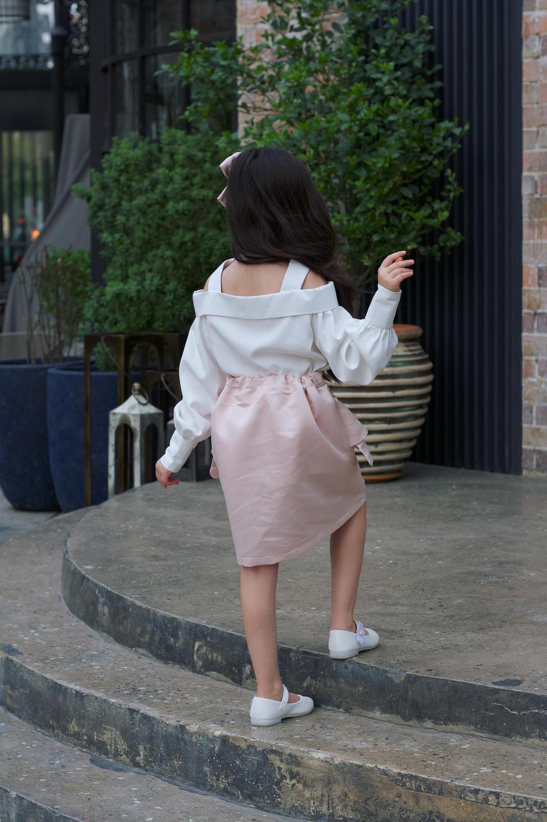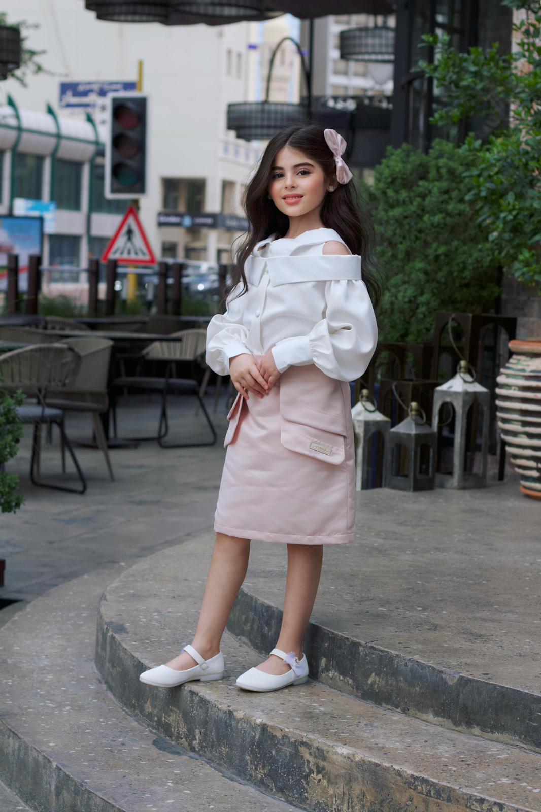 قميص + تنوره+ فيونكه شعر الخام كريب + ستن فاي